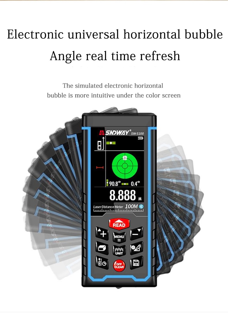 1, Easy targeting with bright laser pointer, a labor intensive distance measurer makes field work easy, mindless & accurate. Ideal for home, construction and industries, especially in large areas such as rooms, apartments, buildings, real estates, factories, warehouses, etc.