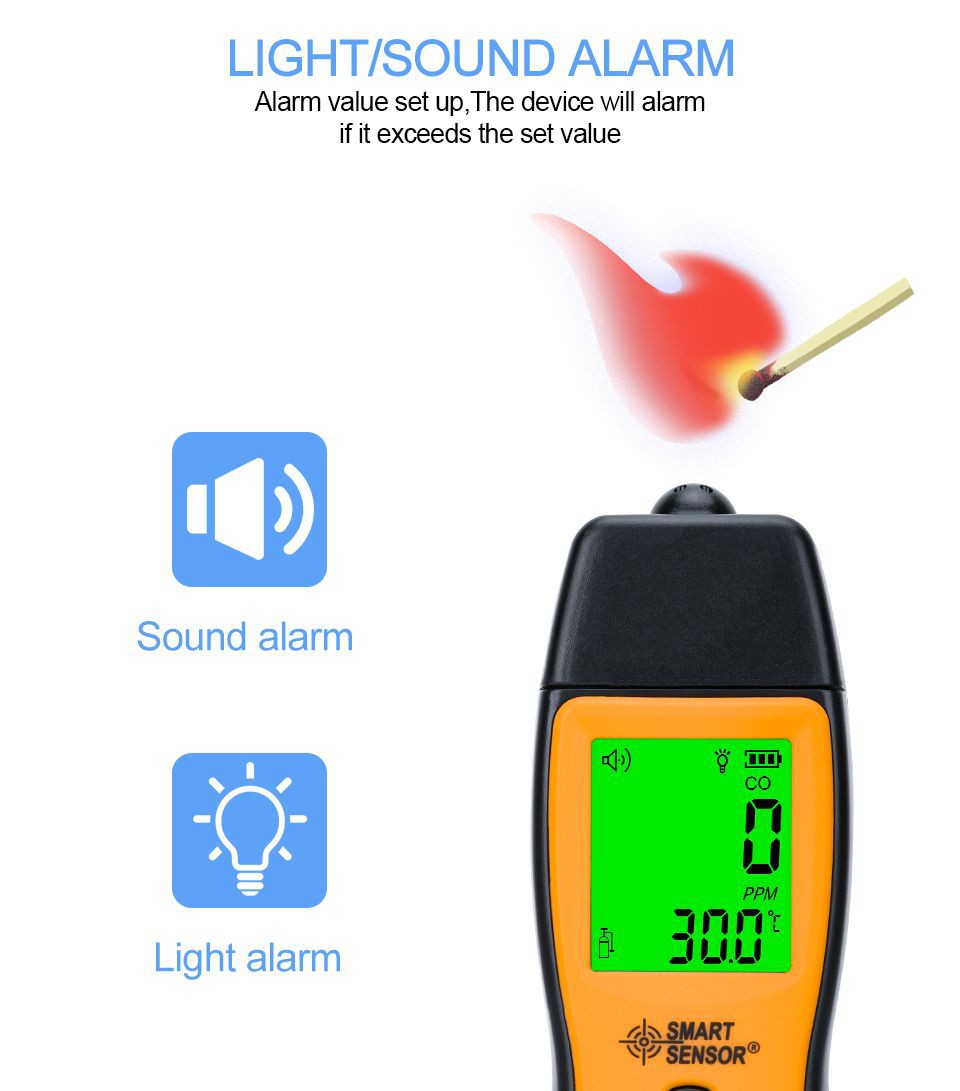 SMART SENSOR CO Detector Handheld Carbon Monoxide Meter with High Precision CO Gas Tester Monitor Detector Gauge Sound Alarm GVDA Technology Limited